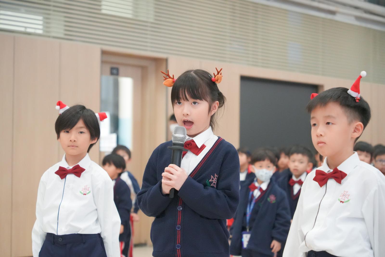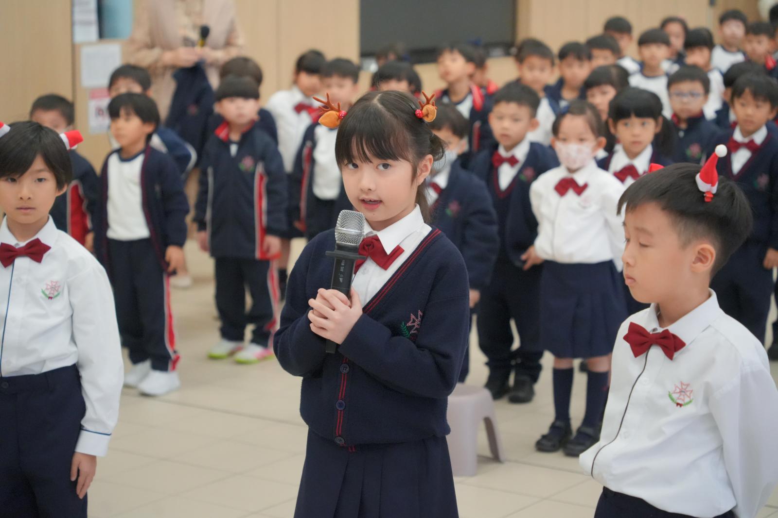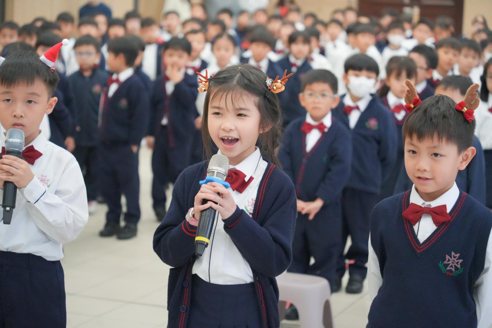 Our Primary One students delighted everyone with their cheerful performance of 'Hello, Reindeer' on 19th December,2025 to celebrate Christmas. Their bright smiles, joyful singing, and confident presence filled the hall with festive spirit. Their enthusiasm and teamwork truly captured the magic of the season and warmed every heart.