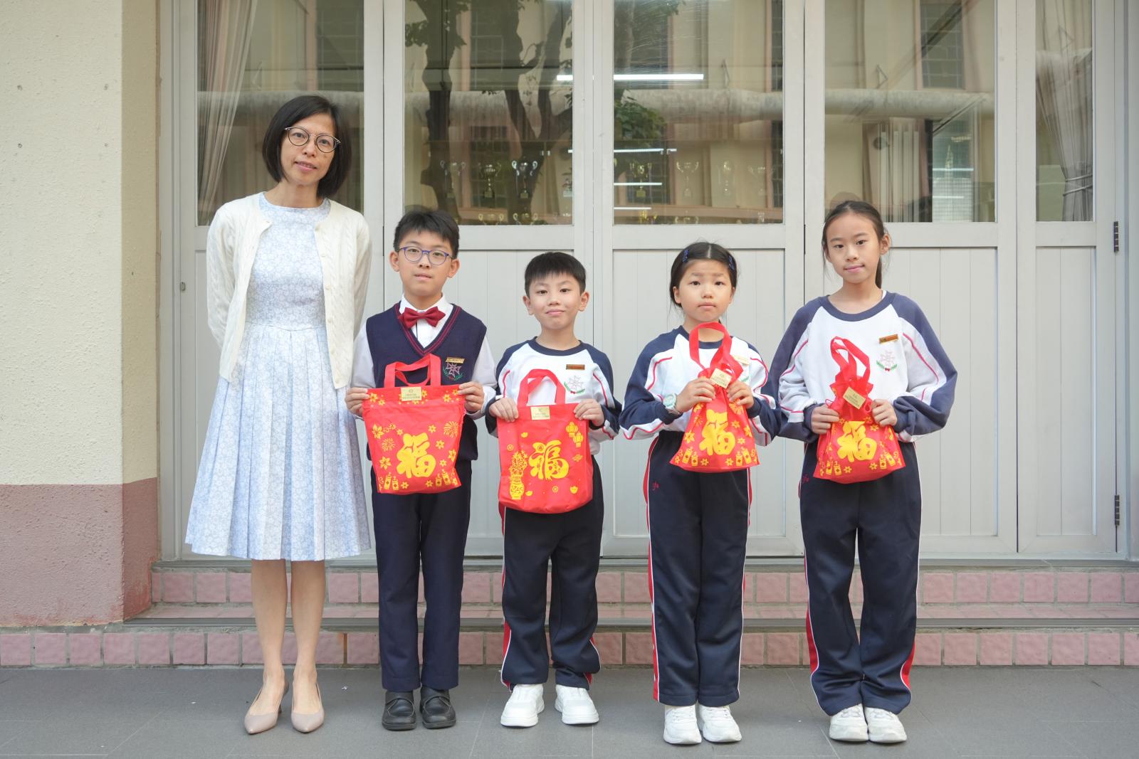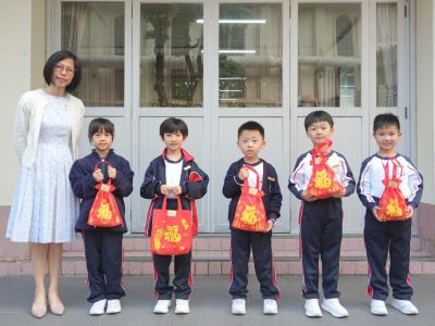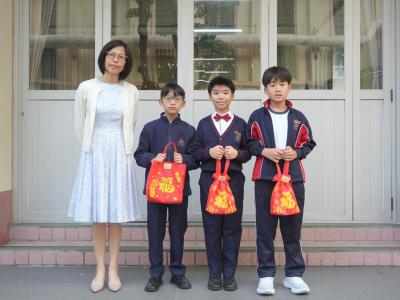 After Chinese New Year holidays, Principal Miss Tam, on behalf of School Supervisor Miss Ting, sent New Year blessings (healthy snacks) to the students. Class representatives of each class came to the stage to receive them. We wish our students can make progress in the new year.