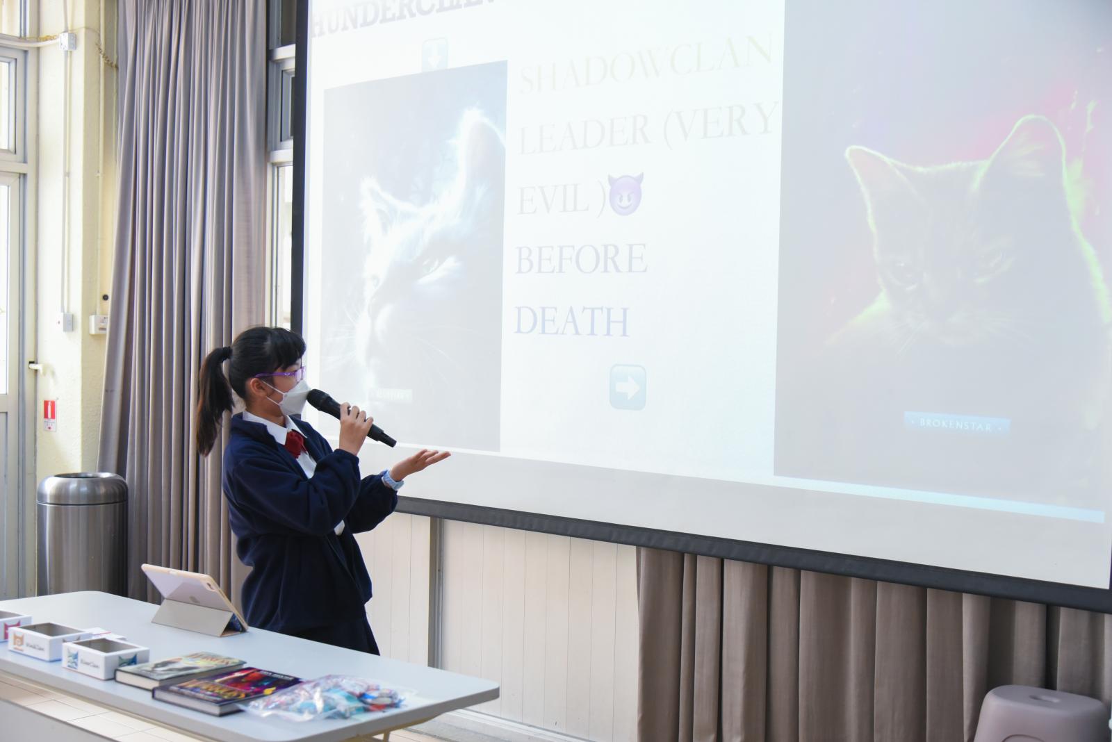 Cassie brought us to a world filled with creativity and wonder today. Warrior Cats showed us the true meaning of responsibility and courage. Thank you to Cassie, we not only had a fun time with warrior cats, but also were amazed by the effort she had put in her sharing!