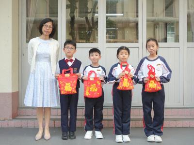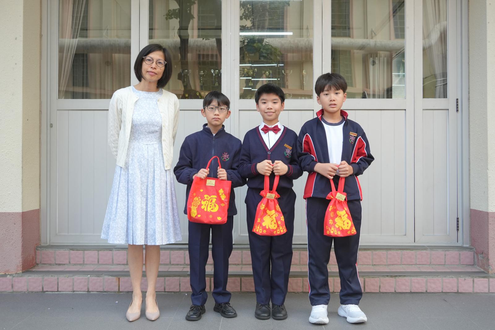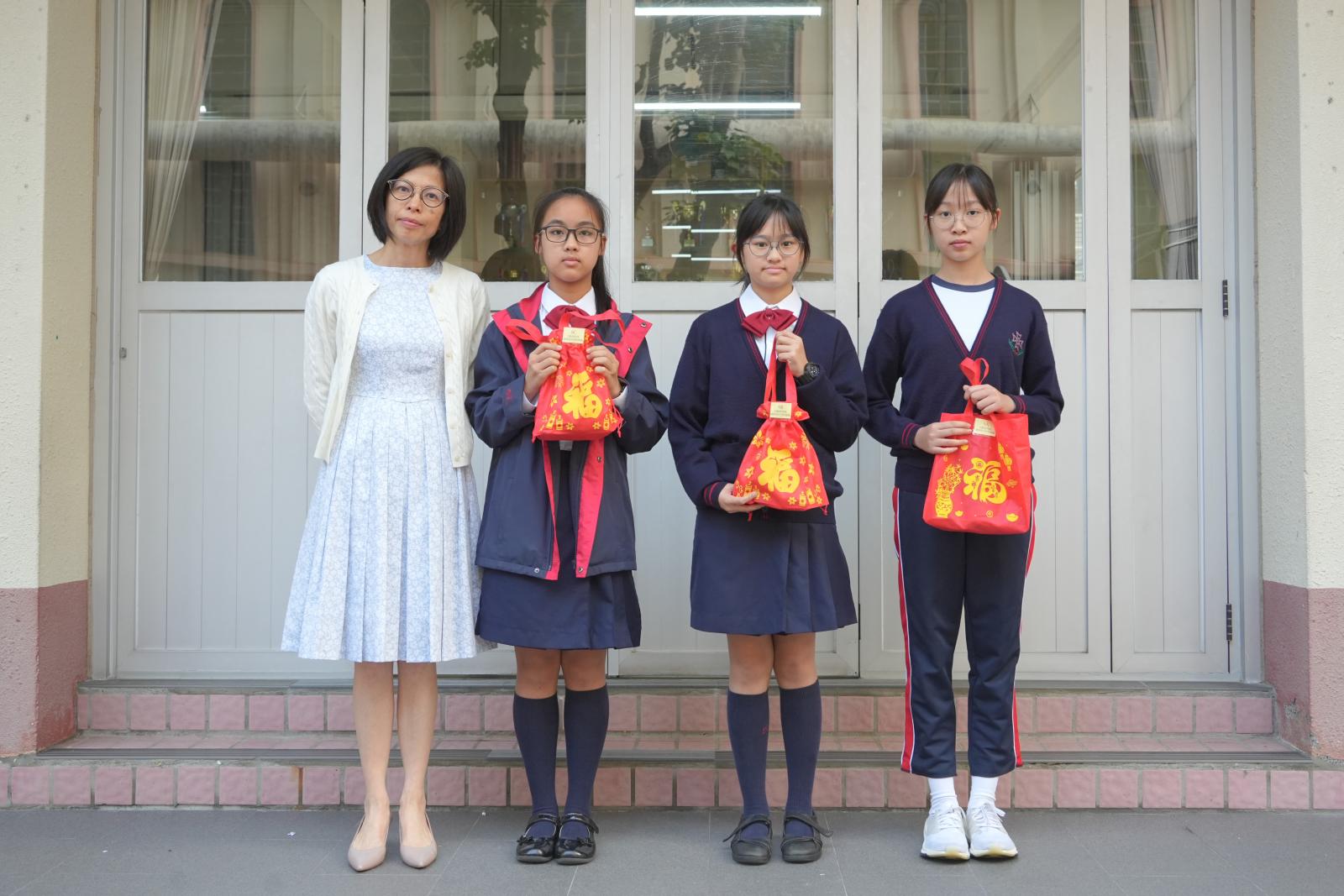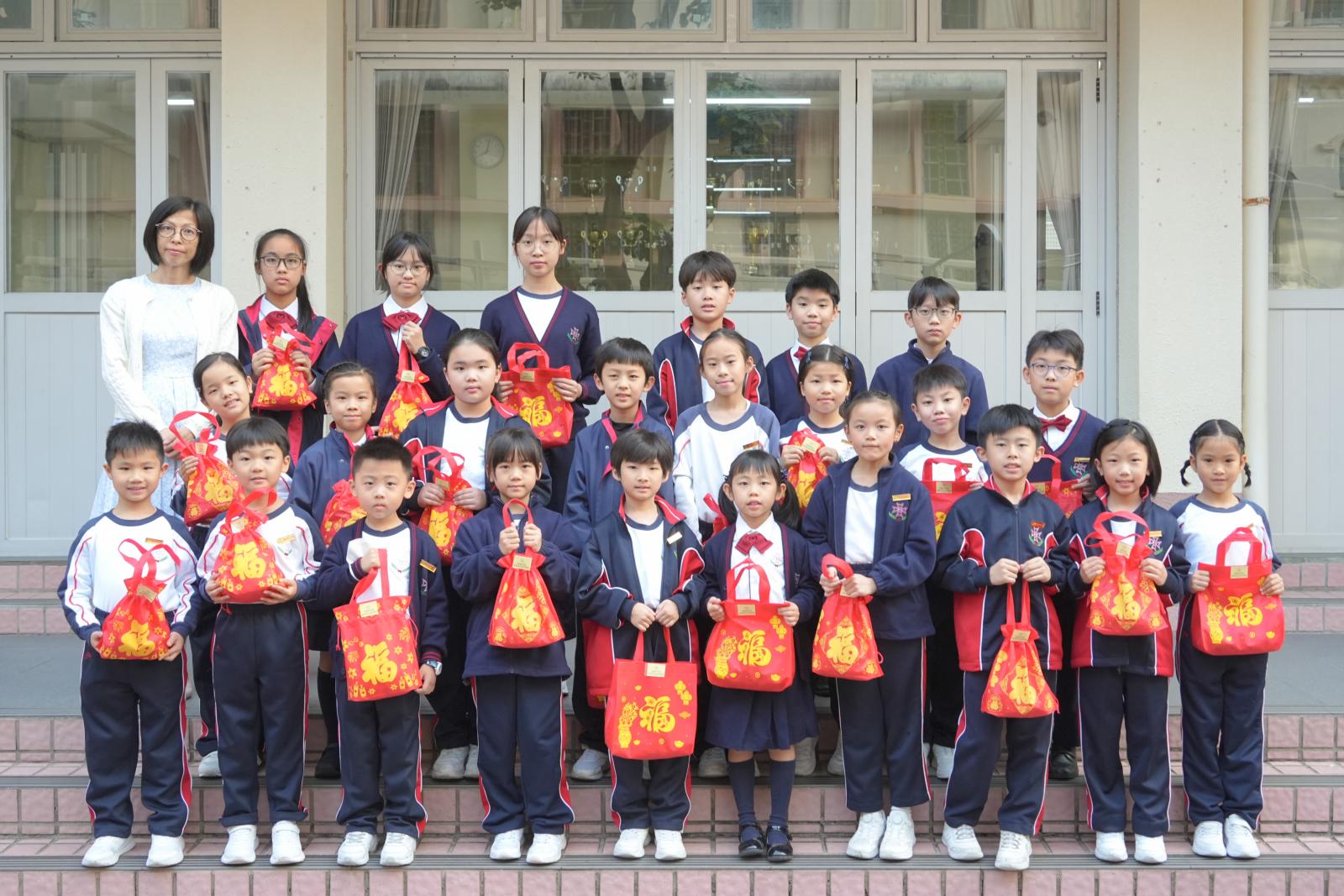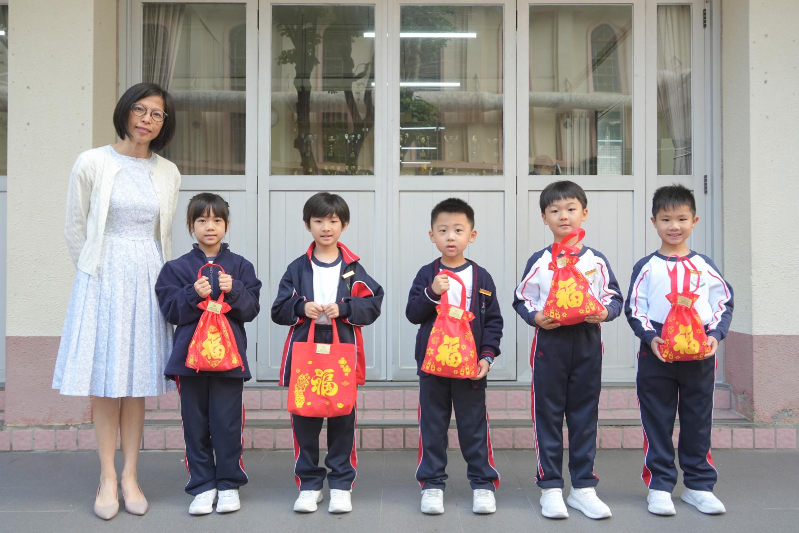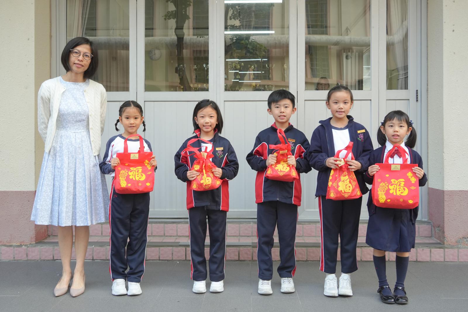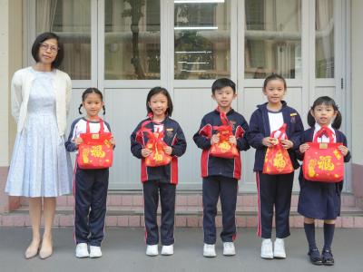 After Chinese New Year holidays, Principal Miss Tam, on behalf of School Supervisor Miss Ting, sent New Year blessings (healthy snacks) to the students. Class representatives of each class came to the stage to receive them. We wish our students can make progress in the new year.