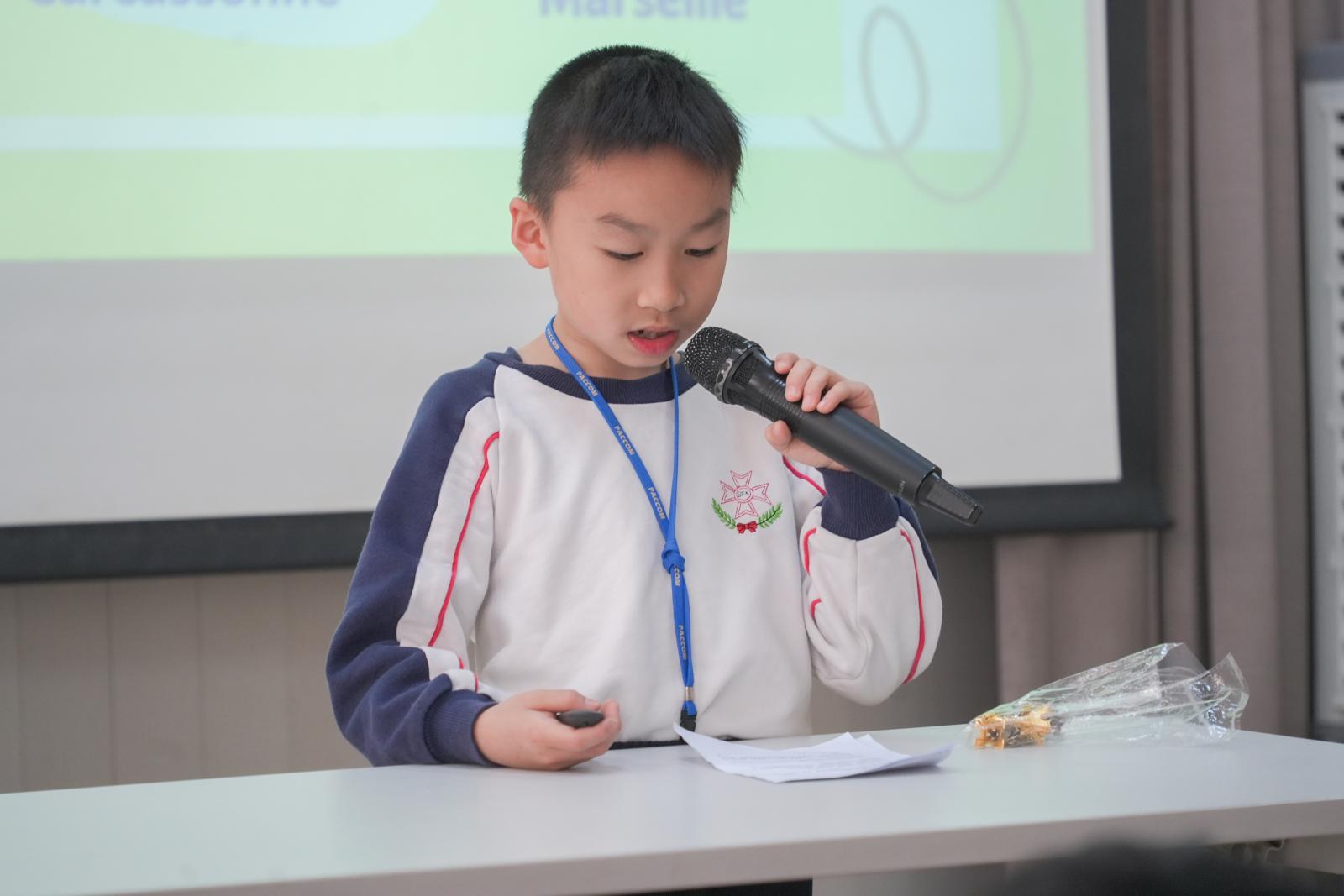 It's an interesting sharing about the summer trip. Our little presenter took us to visit different places in France and introduced authentic French cuisine to us.