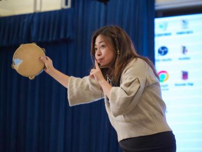 Employing the subject knowledge of Mathematics and Visual Arts, students are able to solidify their knowledge through body movements and amusing group games.